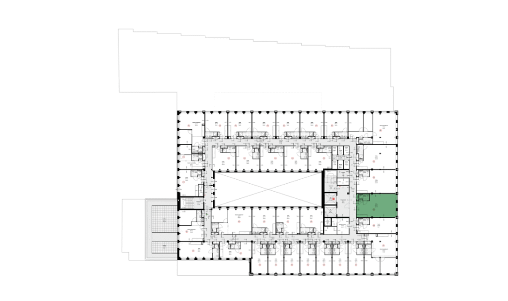 De studio’s bevinden zich op de 1e tot en met de 8e verdieping. De studio’s op de 8e verdieping hebben bovendien extra toegang tot het grote dakterras.