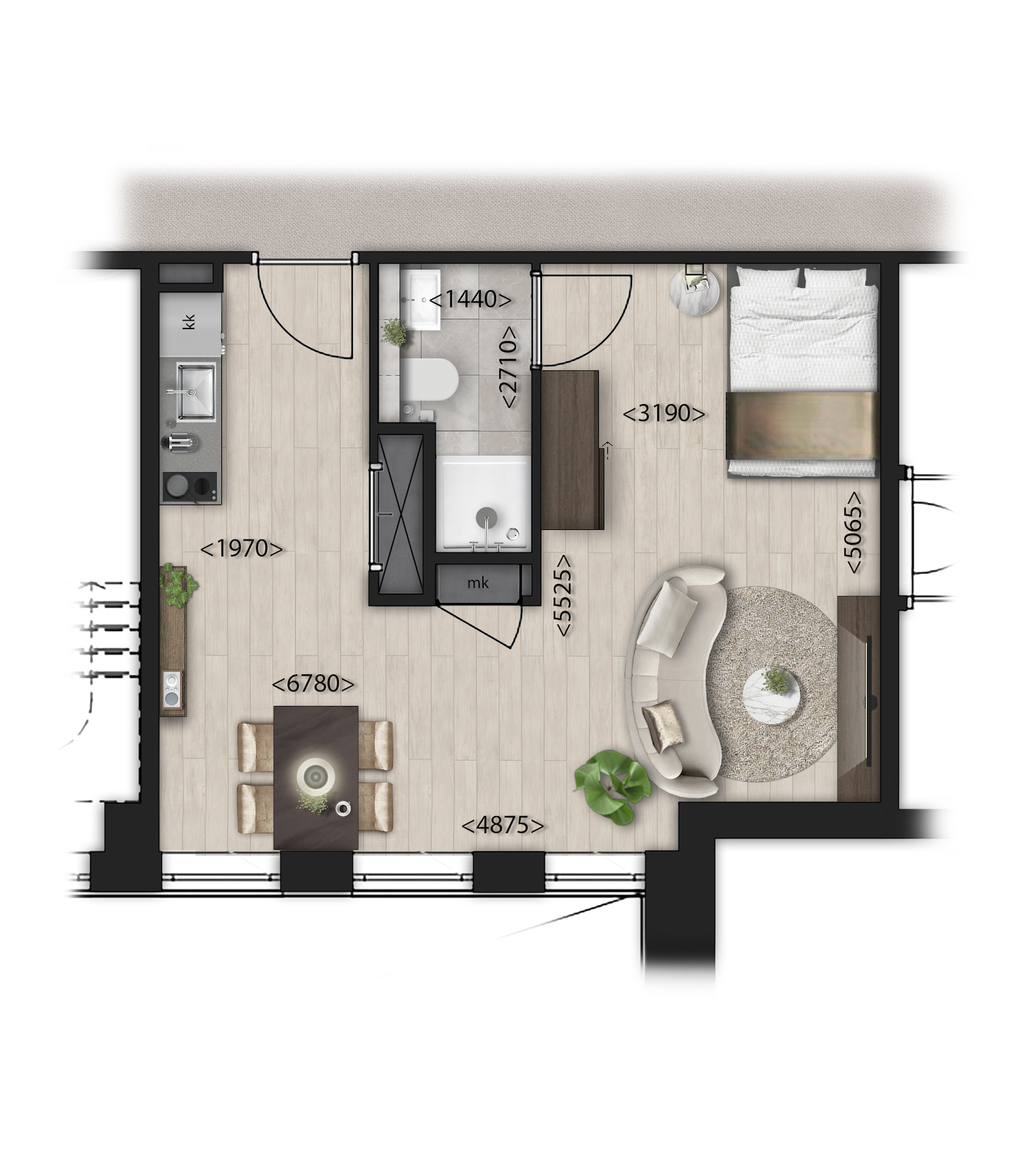 De studio’s zijn beschikbaar in verschillende groottes en zijn gelegen op verschillende verdiepingen. Een aantal studio’s beschikken over een eigen buitenterras. Bekijk de interactieve plattegrond om de verschillende studio’s te bekijken.